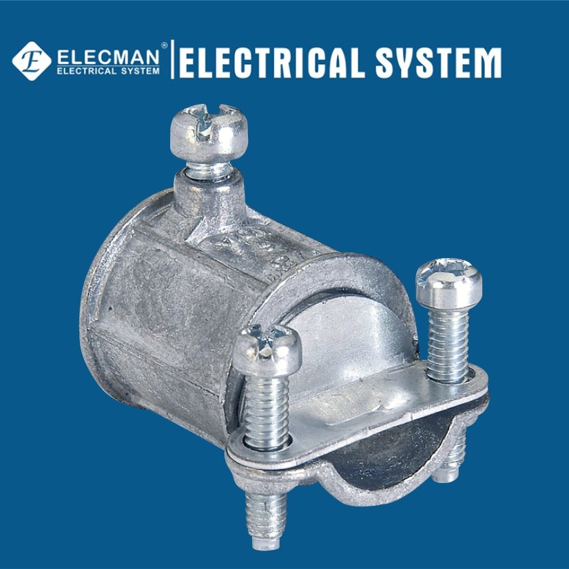 ELECMAN cung cấp kích thước đầy đủKhớp nối uốn kết hợp kẽm (hai vít siết) đến khớp nối EMT (vít định vị)từ 1/2 "EMT-3/8" FMC đến 1 "EMT-1" FMC.