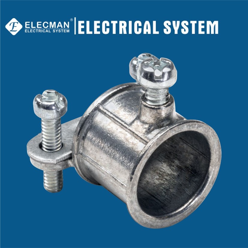 ELECMAN cung cấp đầy đủ kích thướckẽm EMT với khớp nối kết hợp loại kẹp ống luồn dây điện bằng kim loại linh hoạttừ 1/2"EMT-3/8"FMC đến 1"EMT-1"FMC.