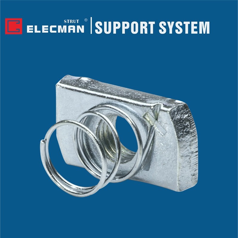 ELECMAN cung cấp kích thước đầy đủđai ốc kẹp kênh thanh chống bằng thép mạ kẽm với lò xo ngắn.